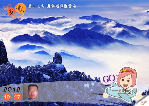 安樂自在遊黃山,徽章浸為心中印,遠望.近眺當在ㄋ我神往中..