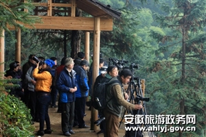 休寧溪口鎮境內的新安第一潭——冰潭村山清水秀,倒映如畫,琉璃似鏡,攝影人在拍攝浮橋、竹筏,充分感受新安源頭水的秀美和靈氣。在夢裡山村——祖源、鄉村福地——陽幹、紅葉之鄉——小坑等地,到處可見扛著長槍短炮的人。