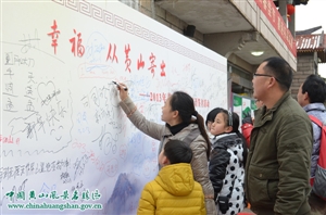 為喜迎新春,黃山風景區推出了“百張笑臉迎新春”、“幸福從黃山寄出”等特色的活動。大年初一在北海景區展出的“百張笑臉”圖和2012大美黃山國際攝影大展獲獎作品,笑臉圖、攝影展與黃山雪景相映成趣,遊客們紛紛駐足觀看,並拿起手中的相機,帶走這些溫暖的回憶。春節黃金周期間,景區各賓館酒店還以濃濃的春節氣氛喜迎賓朋,在住宿、用餐、體驗方面,盡可能地為遊客提供精細化、個性化和節日特色服務,讓遊客感受節日氛圍、感受地方習俗、感受幸福生活。大年初四,在玉屏景區開展的“幸福,從黃山寄出”吸引了眾多遊客的熱情參與,眾多遊客紛紛在背景板上簽字,並寫上新春的祝福。帶有黃山風光的賀卡,從海拔1700米的黃山之巔寄出,傳播到四面八方。
