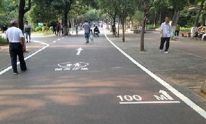 為響應國家全民健身的號召,滿足群眾日益增多的戶外運動需求,近日,由園林局聯合市文旅體委在相山公園內劃設健身步道並對原有路標線重新劃設。此次劃設的健身步道繞園一周,起點設在相山公園東大門,終點為南大門,總長約為3000米,沿路每100米作距離標記,全程所有步道口設虛線引導標識。新標線所使用的塗料含有較高的螢光成分,極大地方便遊客晚間行走。