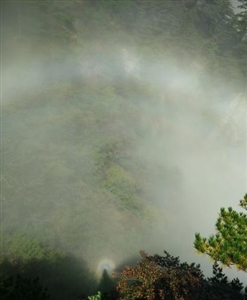 據專家介紹,佛光是山嶽型景區的一種奇特自然美景,只要有合適的雲霧條件,幾乎隨時都可以看到佛光。如果面前有密雲或濃霧,背後是晴朗的天空,陽光從背後射向密雲濃霧,光線經雲霧區水滴衍射,就會出現五彩繽紛的光環。來山遊客一定要掌握這一訣竅,判斷佛光出現的位置,便可大飽眼福。