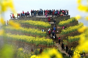 3月19日,安徽歙縣霞坑鎮石潭村千畝油菜花盛開,當日近2萬遊客在花叢中賞花拍照。